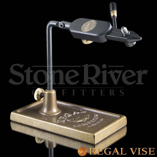 The Bulldog of the fly bench, nothing holds a hook like a Regal Medallion Series Vise! Incredibly popular with commercial fly tiers, Regal vises require no fine tuning or adjustment between changing flies because their compression style jaws adjust around hooks sized #22 thru #3/0 automatically. Simply squeeze the actuator lever, place the hook properly into the case-hardened jaws, gently release, and you're ready to tie! The vise head rotates 360 degrees with a 240 degree adjustable pitch range giving tiers amazing access and versatility. An all-time top performer, get yourself a Regal and you'll quickly see why it's the favorite of so many renowned fly tiers. RPBR vise package includes Traditional Vise Jaws and your choice of Traditional 10T Bronze Logo or 10P Bronze Pocket Pedestal Base. Accessory parts sold separately.